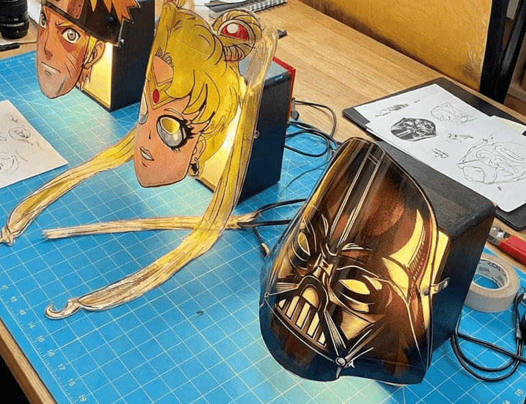 Gallery-Grade Glow: Every Facelitz is a dual-purpose masterpiece, transitioning from high-impact wearable armor to a glowing home decor centerpiece via our custom LED lightboxes.